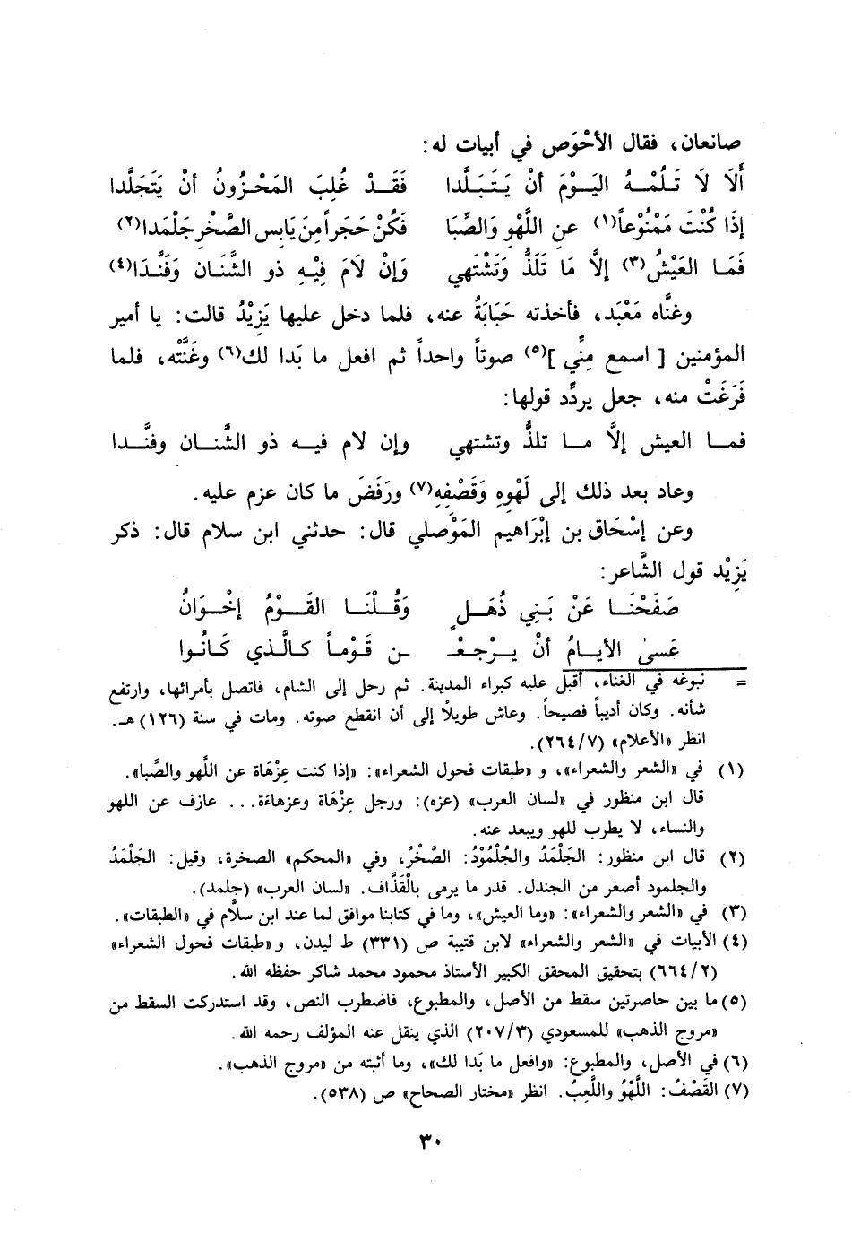 وعن إسحاق بن إبراهيم الموصلي قال: حدثني ابن سلام قال: ذكر يزيد قول الشّاعر: