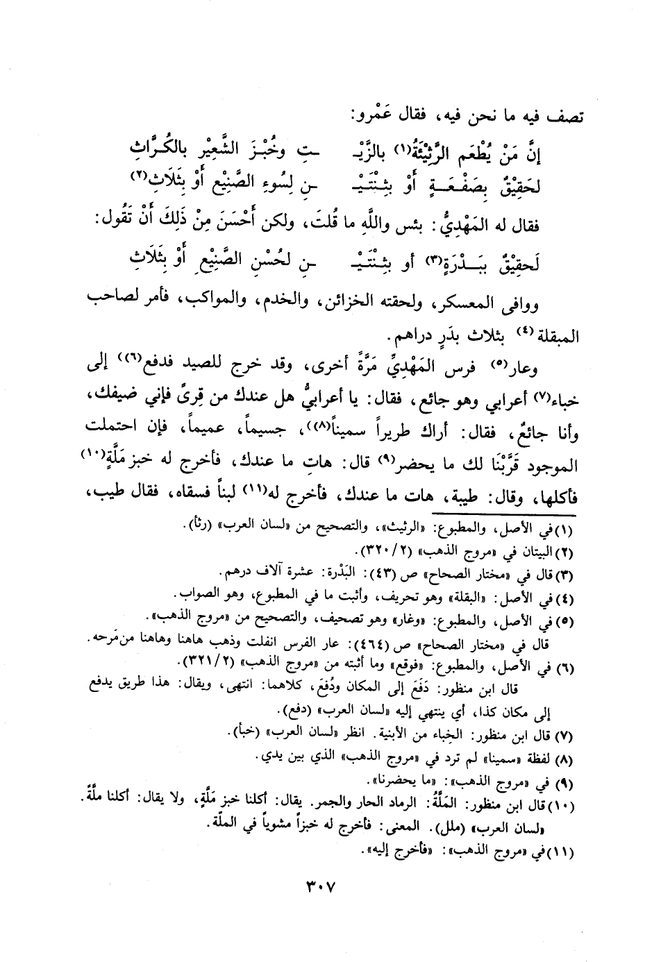 [6] في الأصل، والمطبوع: «فوقع» وما أثبته من «مروج الذهب» (2/ 321) .