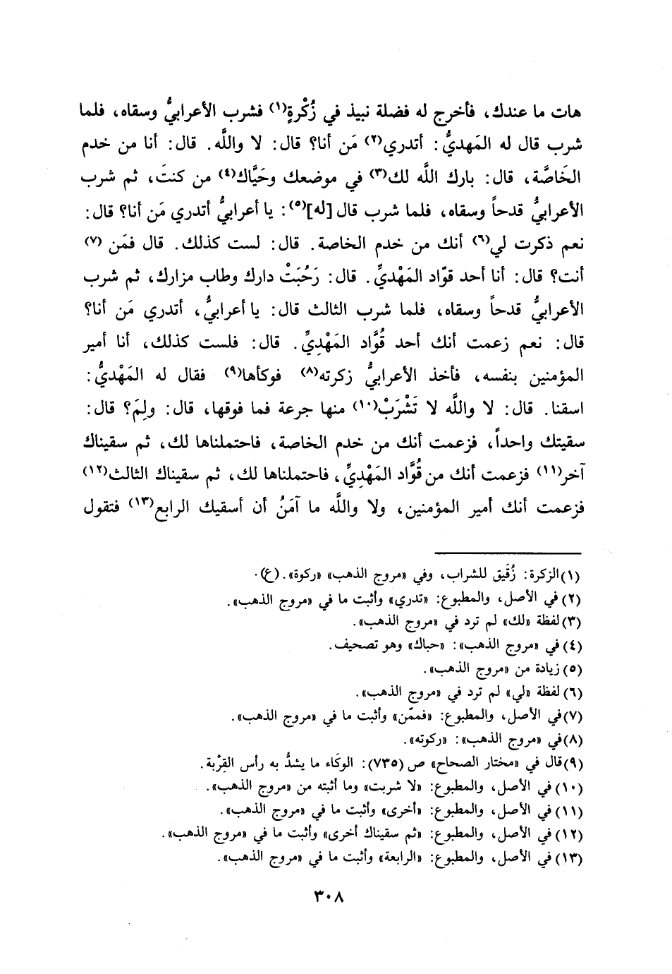 سقيتك واحدا، فزعمت أنك من خدم الخاصة، فاحتملناها لك، ثم سقيناك آخر [11] فزعمت أنك من قوّاد المهديّ، فاحتملناها لك، ثم سقيناك الثالث [12] فزعمت أنك أمير المؤمنين، ولا والله ما آمن أن أسقيك الرابع [13] فتقول