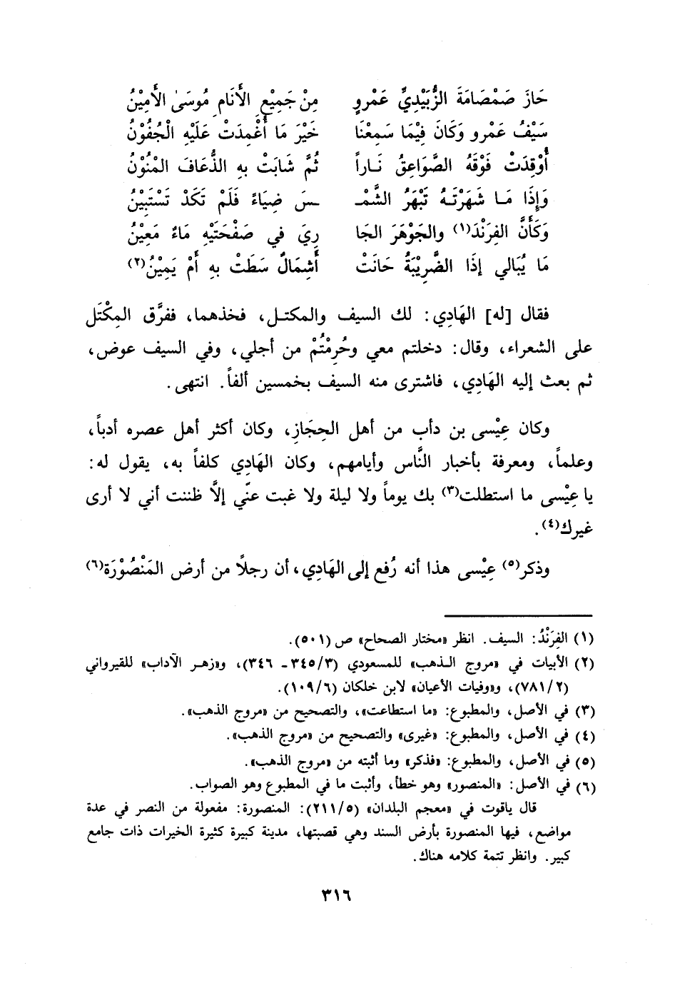[5] في الأصل، والمطبوع: «فذكر» وما أثبته من «مروج الذهب» .