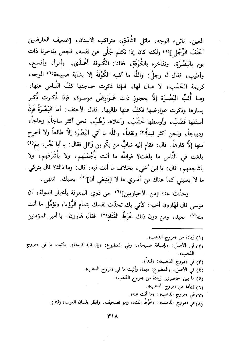 [2] في الأصل: «بإنسانة صبيحة» ، وفي المطبوع: «بإنسانية قبيحة» ، وأثبت ما في «مروج الذهب» .