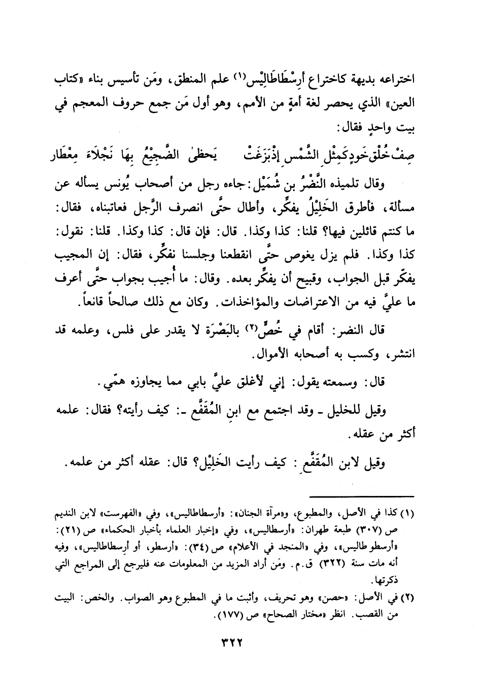[1] كذا في الأصل، والمطبوع، و «مرآة الجنان» : «أرسطاطاليس» ، وفي «الفهرست» لابن النديم ص (307) طبعة طهران: «أرسطاليس» ، وفي «إخبار العلماء بأخبار الحكماء» ص (21) :