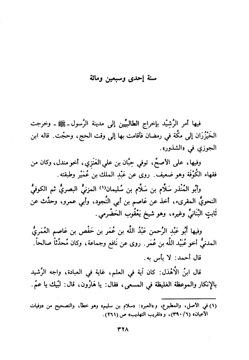 [1] في الأصل، والمطبوع، و «العبر» : «سلام بن سليم» وهو خطأ، والتصحيح من «وفيات الأعيان» (6/ 390) ، و «تقريب التهذيب» ص (261) .