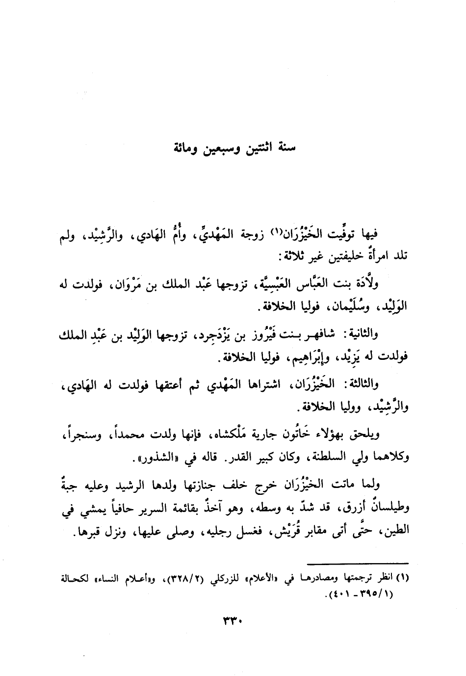 فيها توفّيت الخيزران [1] زوجة المهديّ، وأمّ الهادي، والرّشيد، ولم تلد امرأة خليفتين غير ثلاثة: