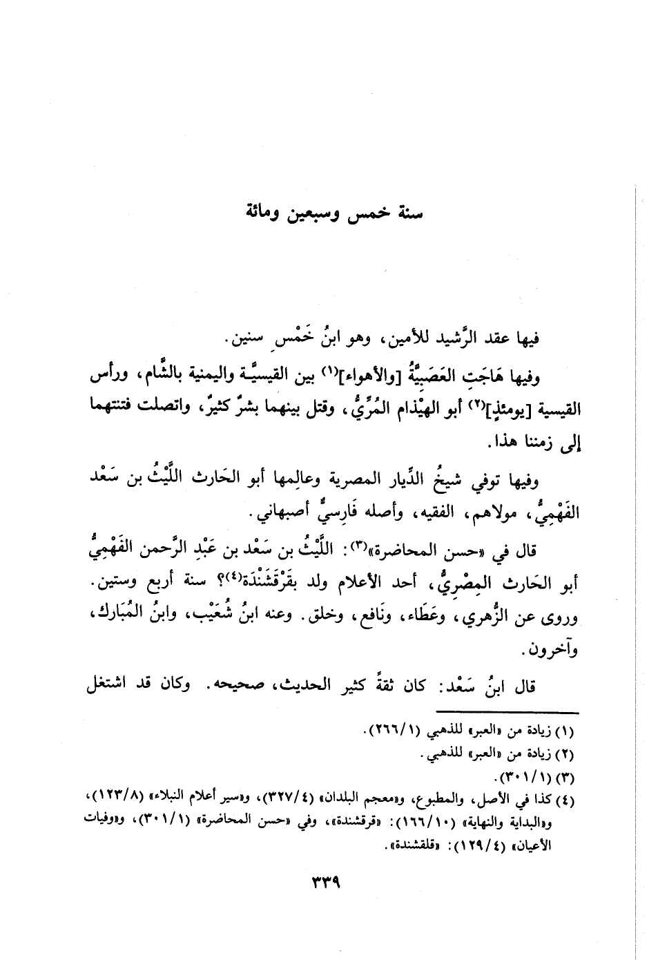 قال في «حسن المحاضرة» [3] : اللّيث بن سعد بن عبد الرّحمن الفهميّ أبو الحارث المصريّ، أحد الأعلام ولد بقرقشندة [4] ؟ سنة أربع وستين.