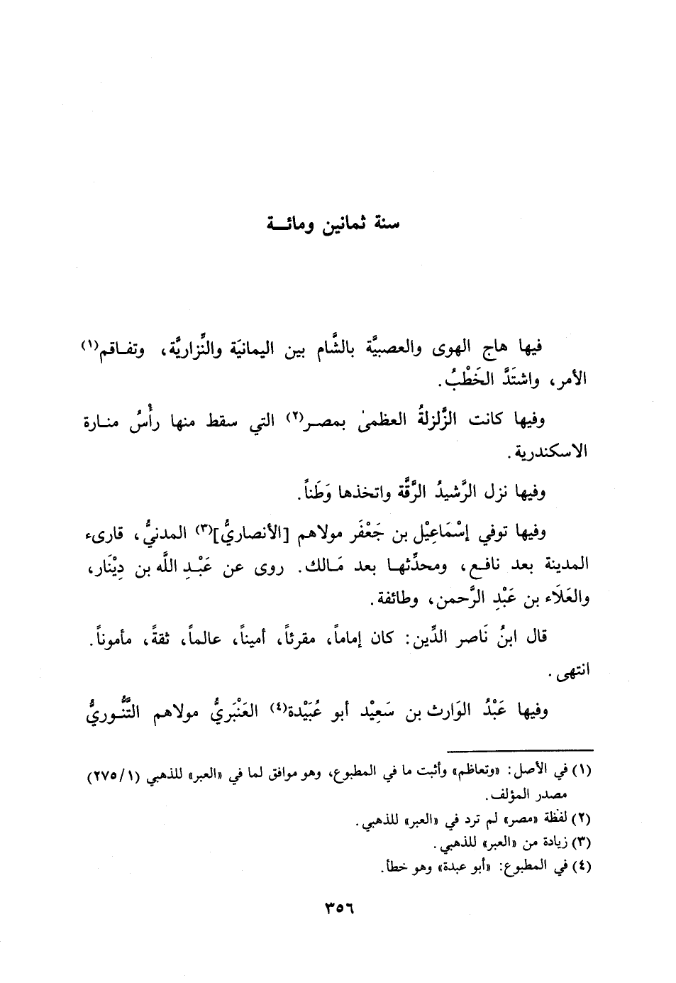 [2] لفظة «مصر» لم ترد في «العبر» للذهبي.