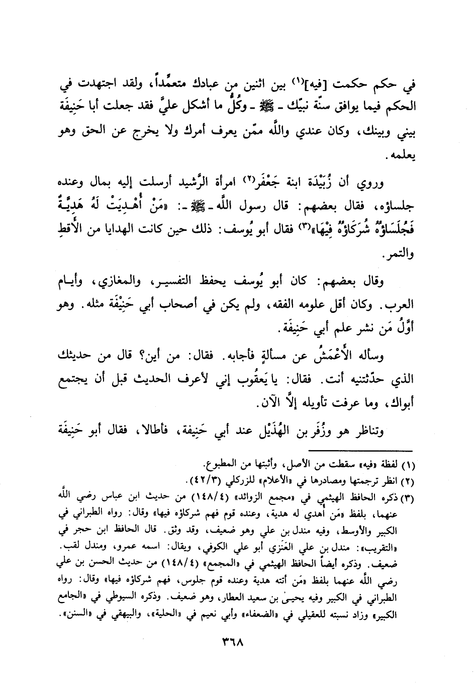 وروي أن زبيدة ابنة جعفر [2] امرأة الرّشيد أرسلت إليه بمال وعنده جلساؤه، فقال بعضهم: قال رسول الله- صلى الله عليه وسلم-: «من أهديت له هديّة فجلساؤه شركاؤه فيها» [3] فقال أبو يوسف: ذلك حين كانت الهدايا من الأقط والتمر.