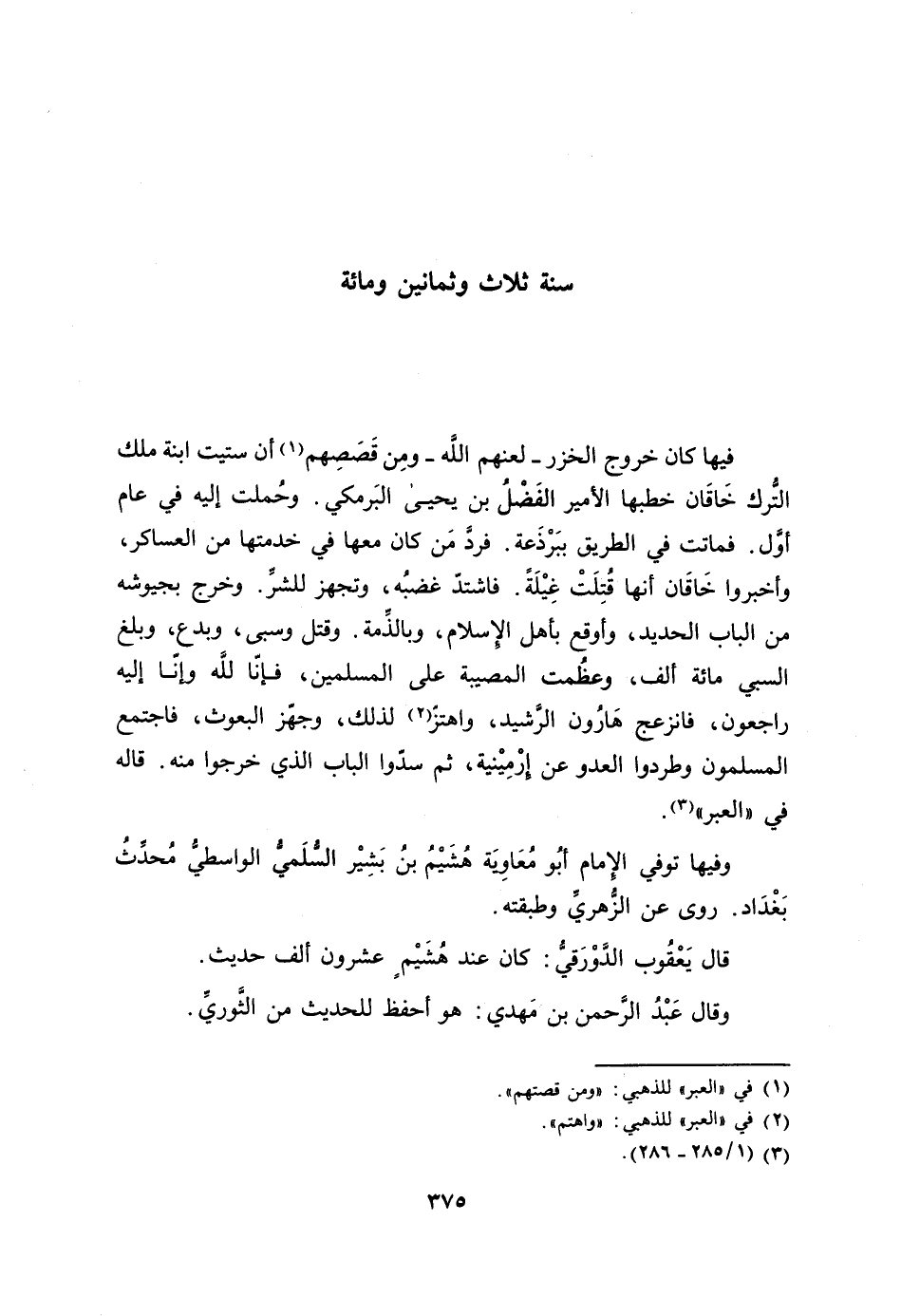 وفيها توفي الإمام أبو معاوية هشيم بن بشير السّلميّ الواسطيّ محدّث بغداد. روى عن الزّهريّ وطبقته.