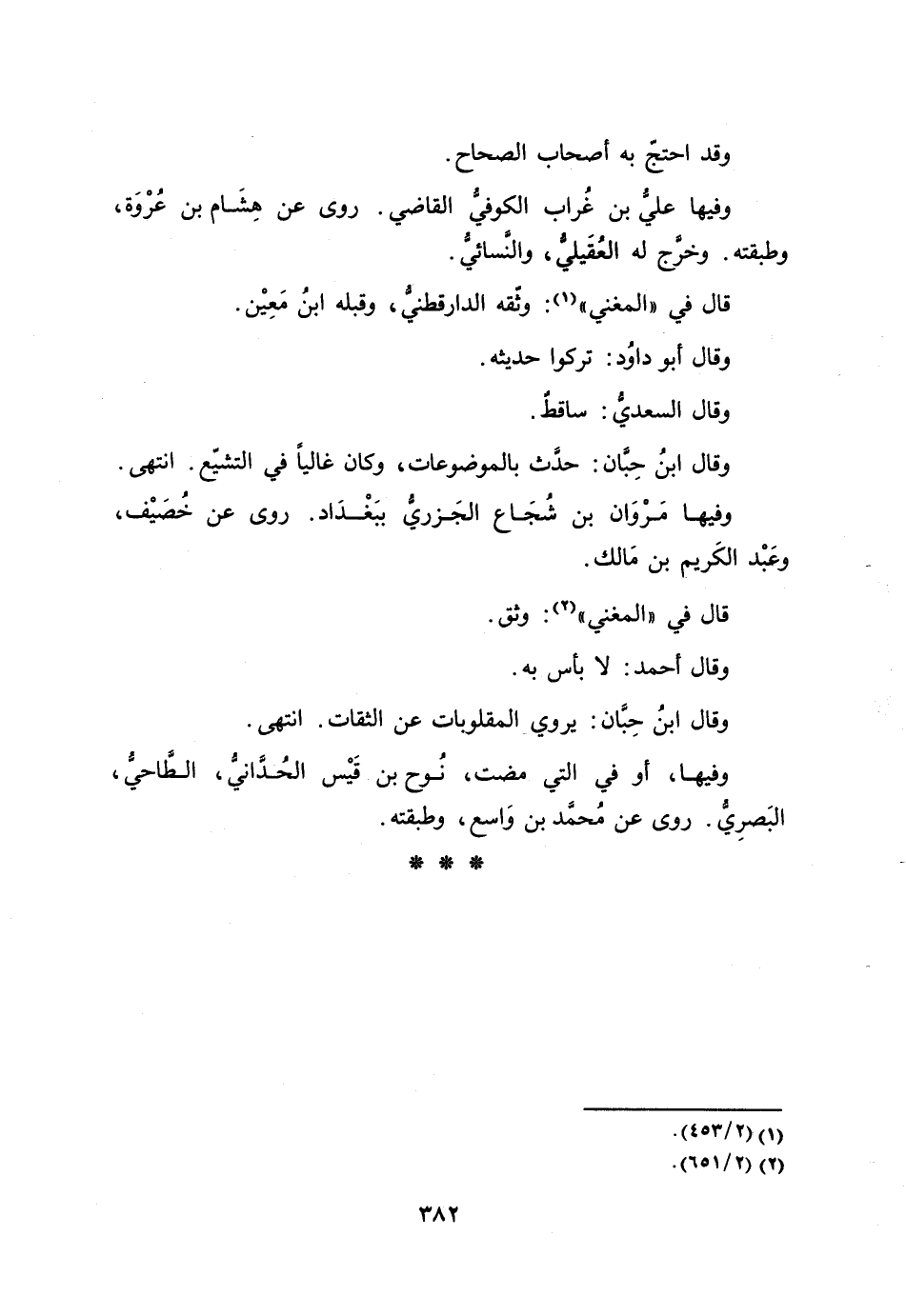 قال في «المغني» [1] : وثّقه الدارقطنيّ، وقبله ابن معين.