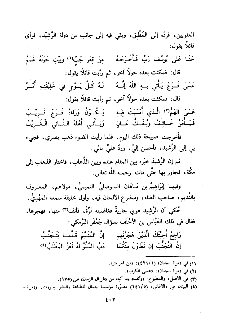 [4] البيتان في «الأغاني» (5/ 241) مصوّرة مؤسسة جمال للطباعة والنشر ببيروت، و «مرآة
