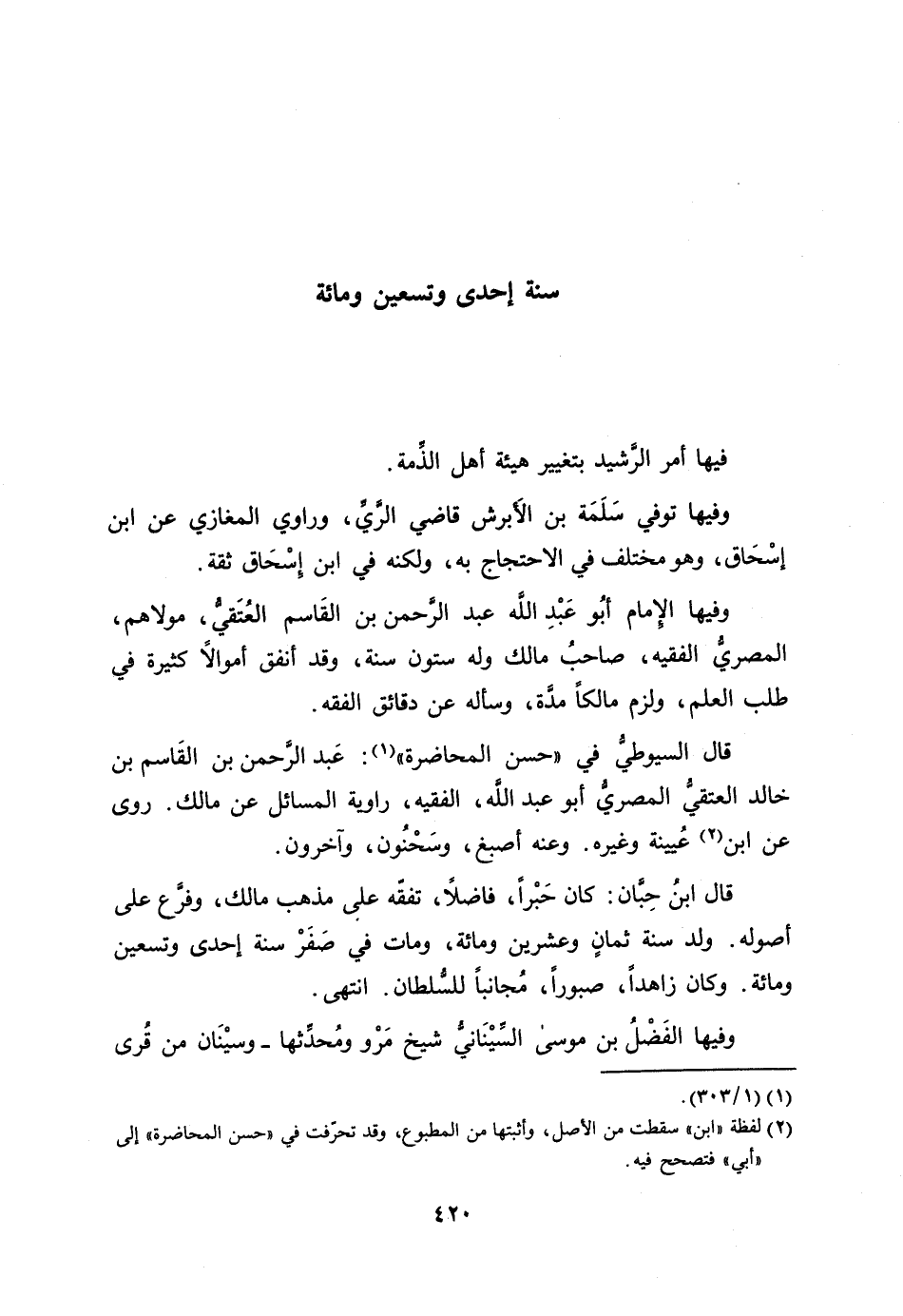[2] لفظة «ابن» سقطت من الأصل، وأثبتها من المطبوع، وقد تحرّفت في «حسن المحاضرة» إلى «أبي» فتصحح فيه.