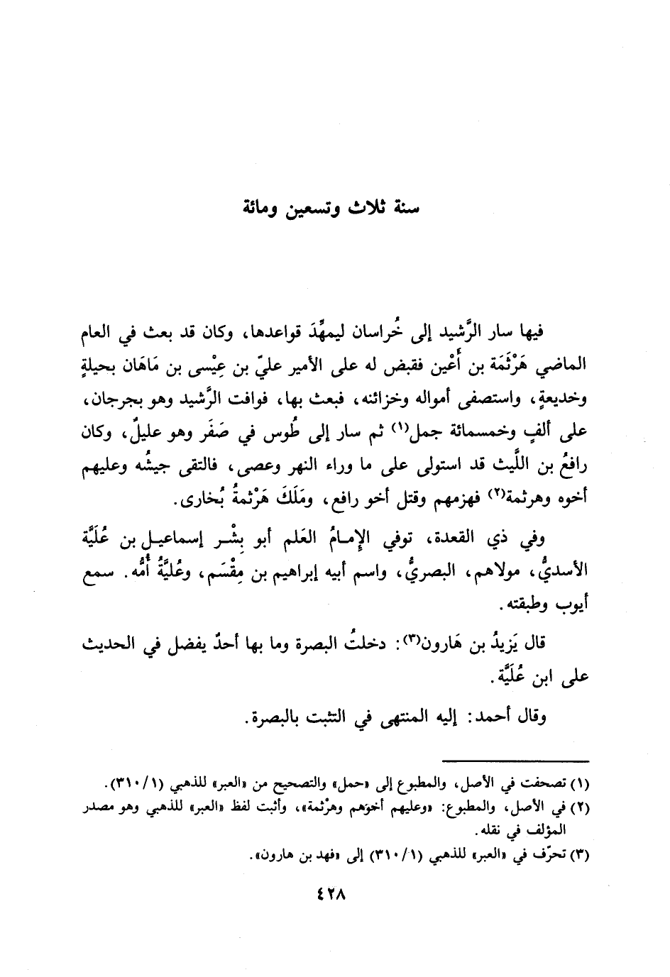 [2] في الأصل، والمطبوع: «وعليهم أخوهم وهرثمة» ، وأثبت لفظ «العبر» للذهبي وهو مصدر المؤلف في نقله.