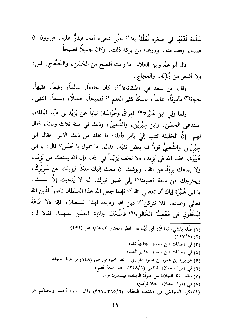 يا ابن هبيرة إياك أن تعصي الله [7] فإنما جعل الله هذا السلطان ناصرا لدين الله تعالى وعباده، فلا تتركن [8] دين الله وعباده لهذا السلطان، فإنه «لا طاعة لمخلوق في معصيّة الخالق» [9] فأضعف جائزة الحسن عليهما. فقالا له: