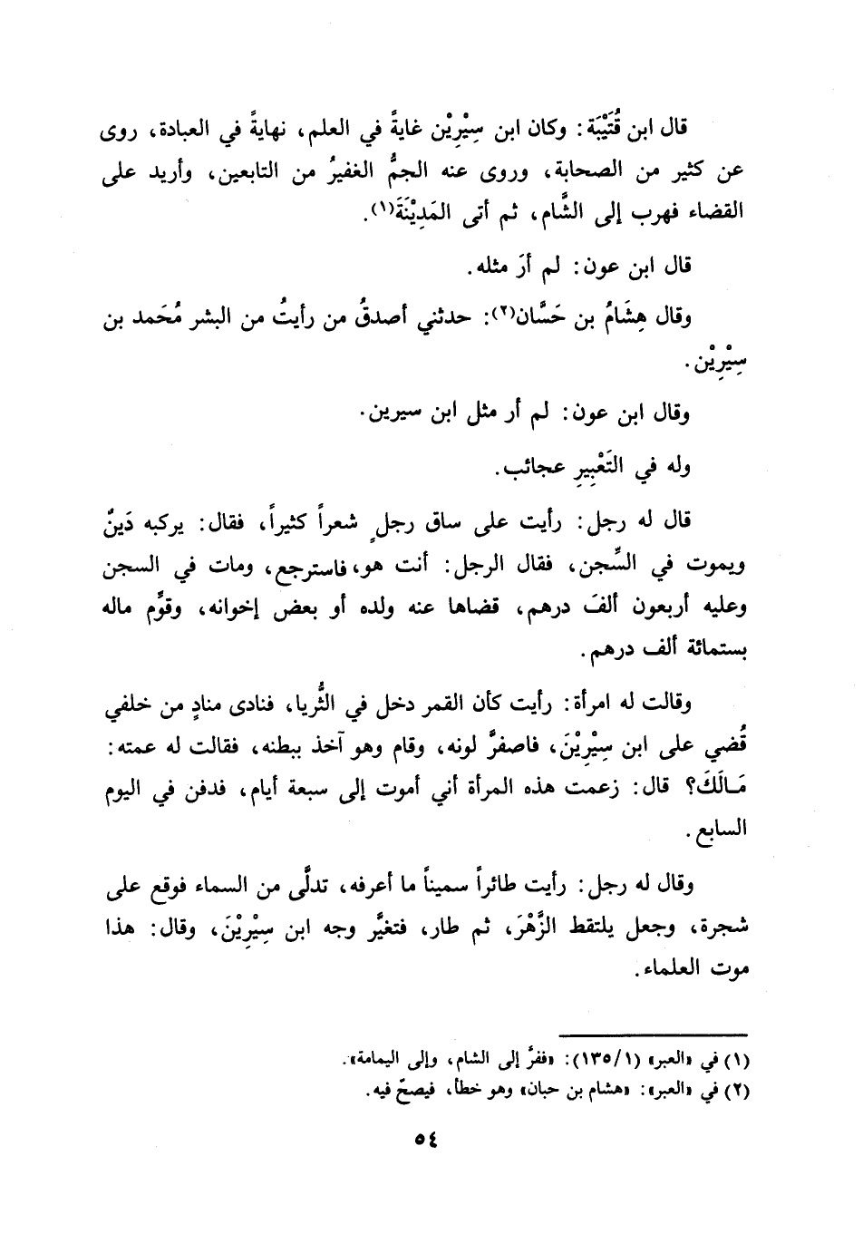 قال ابن قتيبة: وكان ابن سيرين غاية في العلم، نهاية في العبادة، روى عن كثير من الصحابة، وروى عنه الجمّ الغفير من التابعين، وأريد على القضاء فهرب إلى الشّام، ثم أتى المدينة [1] .