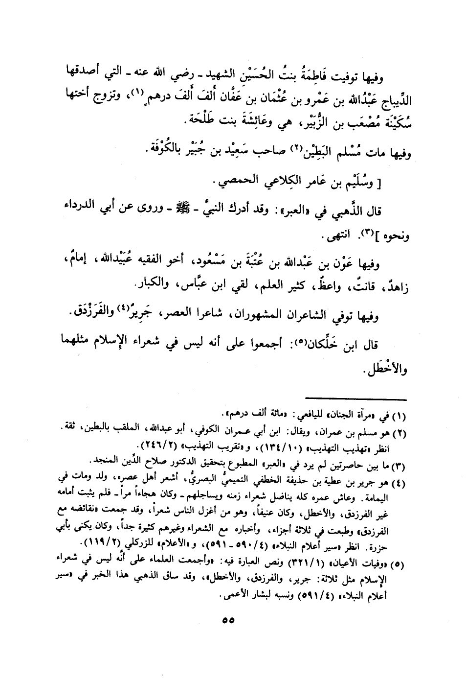 [5] «وفيات الأعيان» (1/ 321) ونص العبارة فيه: «وأجمعت العلماء على أنّه ليس في شعراء الإسلام مثل ثلاثة: جرير، والفرزدق، والأخطل» ، وقد ساق الذهبي هذا الخبر في «سير أعلام النبلاء» (4/ 591) ونسبه لبشار الأعمى.