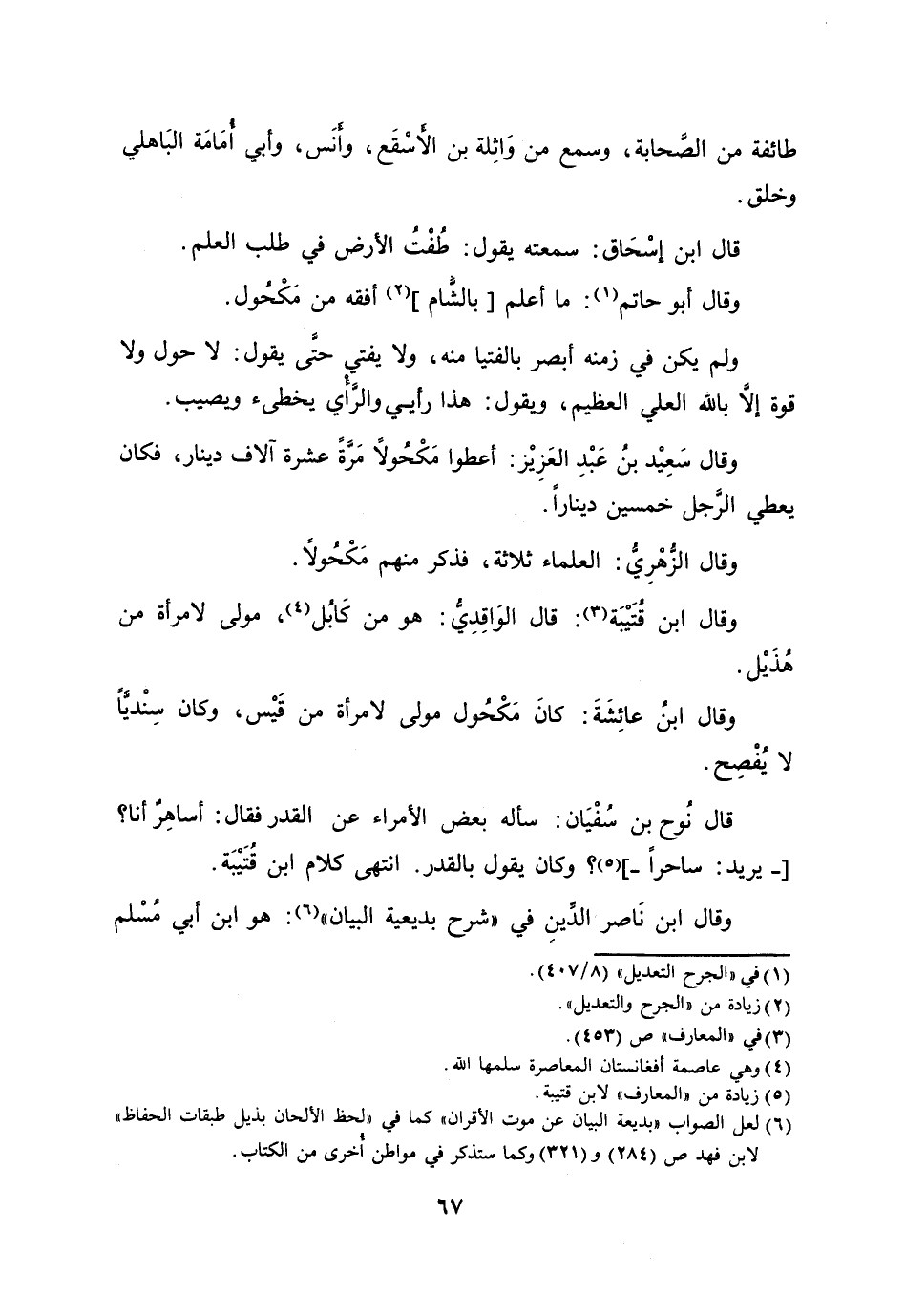 وقال الزّهريّ: العلماء ثلاثة، فذكر منهم مكحولا.