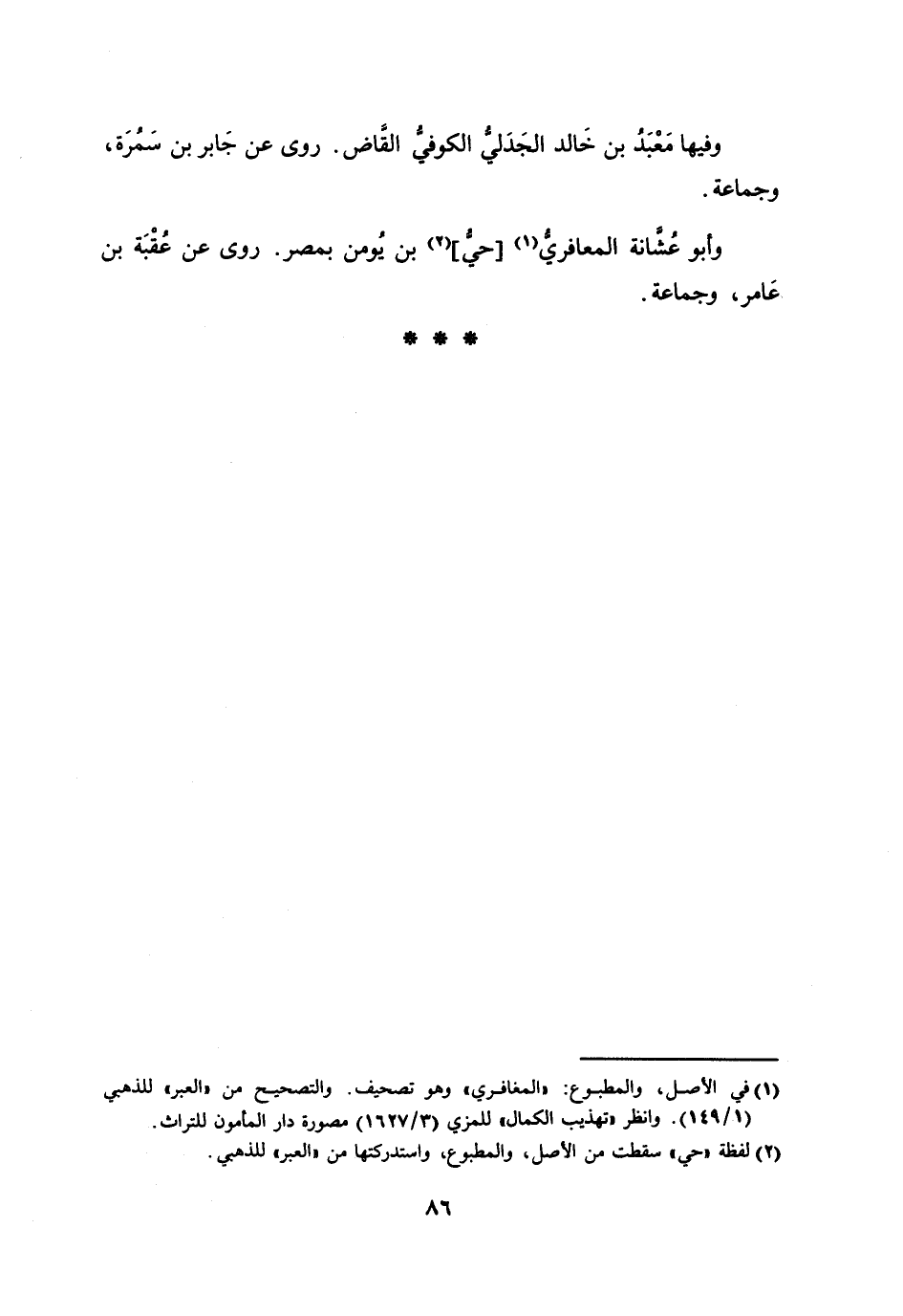 [1] في الأصل، والمطبوع: «المغافري» وهو تصحيف. والتصحيح من «العبر» للذهبي (1/ 149) . وانظر «تهذيب الكمال» للمزي (3/ 1627) مصورة دار المأمون للتراث.