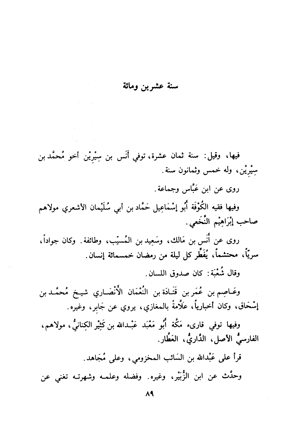 فيها، وقيل: سنة ثمان عشرة، توفي أنس بن سيرين أخو محمّد بن سيرين، وله خمس وثمانون سنة.