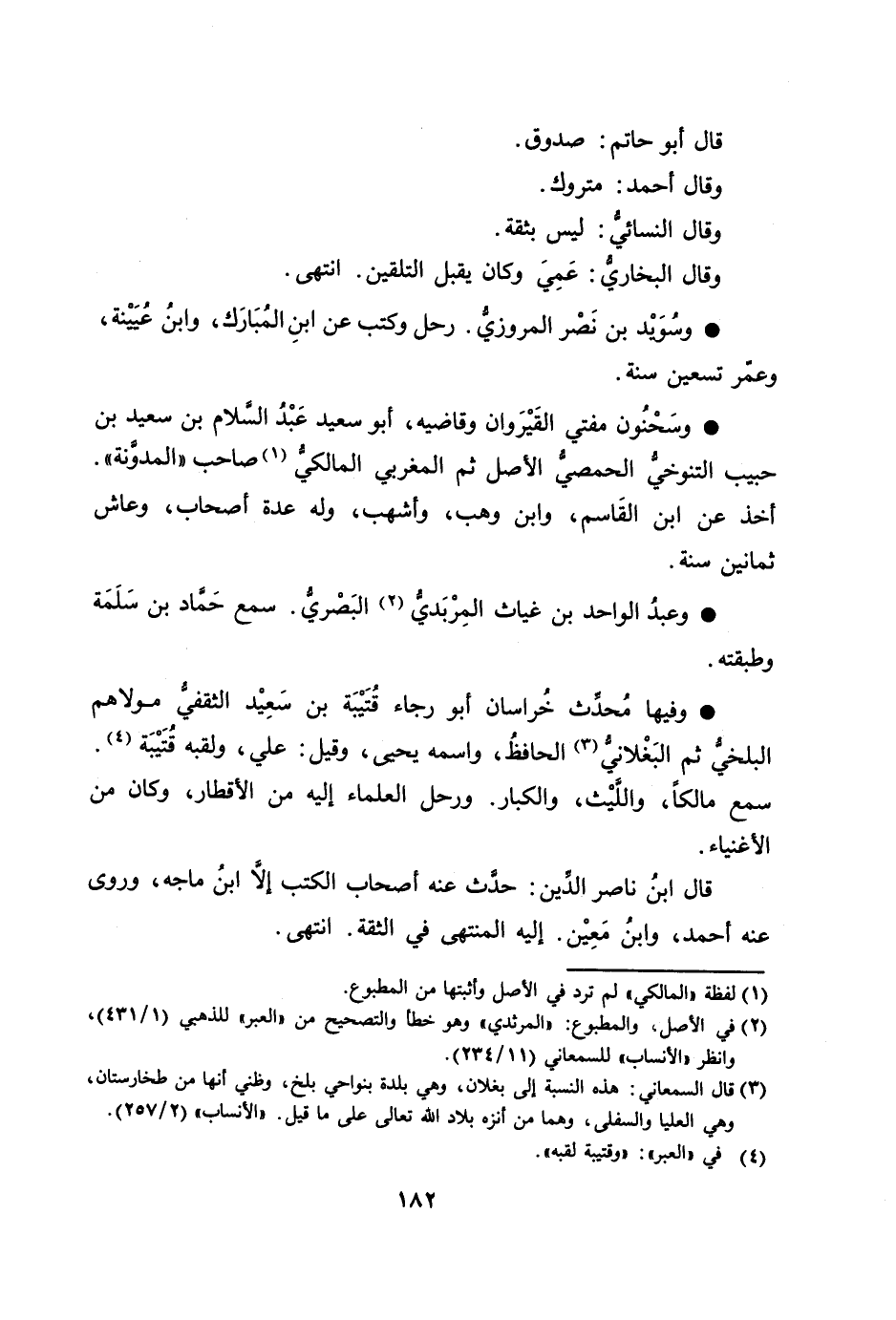 وفيها محدّث خراسان أبو رجاء قتيبة بن سعيد الثقفيّ مولاهم البلخيّ ثم البغلانيّ [3] الحافظ، واسمه يحيى، وقيل: علي، ولقبه قتيبة [4] .