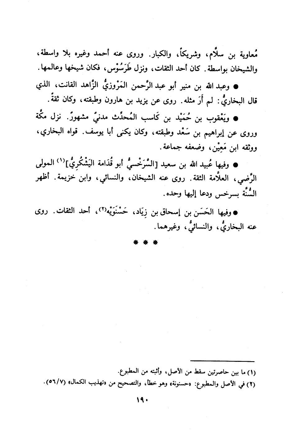وفيها الحسن بن إسحاق بن زياد، حسنويه [2] ، أحد الثقات. روى عنه البخاريّ، والنسائيّ، وغيرهما.