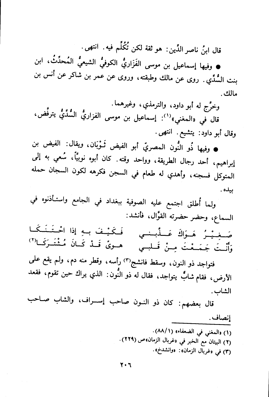 قال بعضهم: كان ذو النون صاحب إسراف، والشاب صاحب إنصاف.