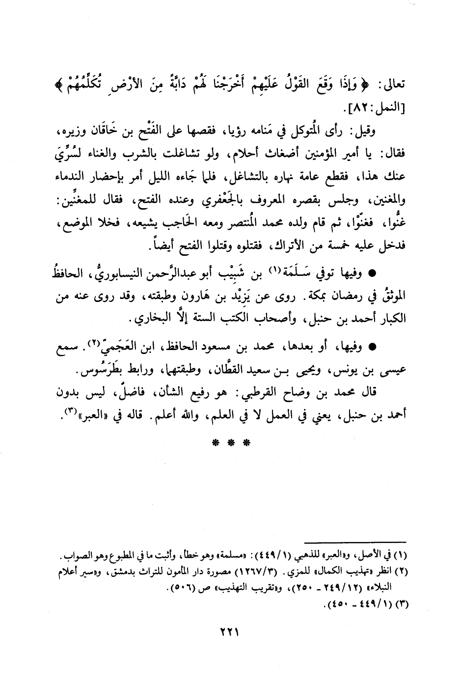 [2] انظر «تهذيب الكمال» للمزي. (3/ 1267) مصورة دار المأمون للتراث بدمشق، و «سير أعلام النبلاء» (12/ 249- 250) ، و «تقريب التهذيب» ص (506) .