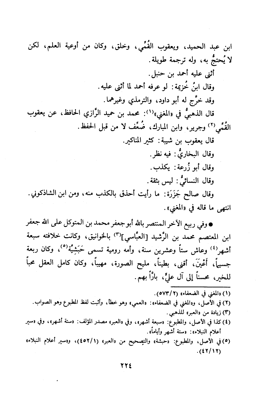 وفي ربيع الآخر المنتصر بالله أبو جعفر محمد بن المتوكل على الله جعفر ابن المعتصم محمد بن الرّشيد [العبّاسي] [3] بالخوانيق، وكانت خلافته سبعة أشهر [4] وعاش ستا وعشرين سنة، وأمه رومية تسمى حبشيّة [5] ، وكان ربعة جسيما، أعين، أقنى، بطينا، مليح الصورة، مهيبا، وكان كامل العقل محبا للخير، محسنا إلى آل عليّ، بارّا بهم.