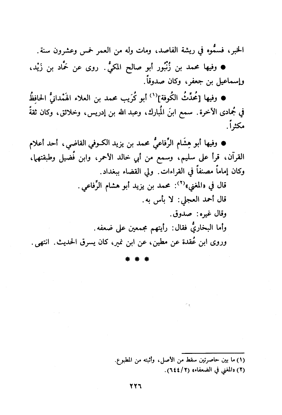 قال في «المغني» [2] : محمد بن يزيد أبو هشام الرّفاعي.