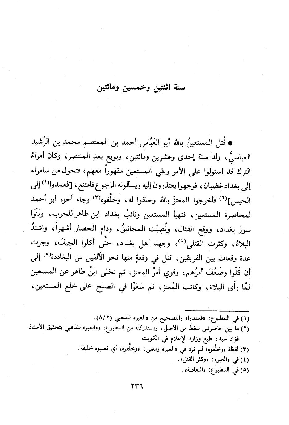 [2] ما بين حاصرتين سقط من الأصل، واستدركته من المطبوع، و «العبر» للذهبي بتحقيق الأستاذ فؤاد سيد، طبع وزارة الإعلام في الكويت.