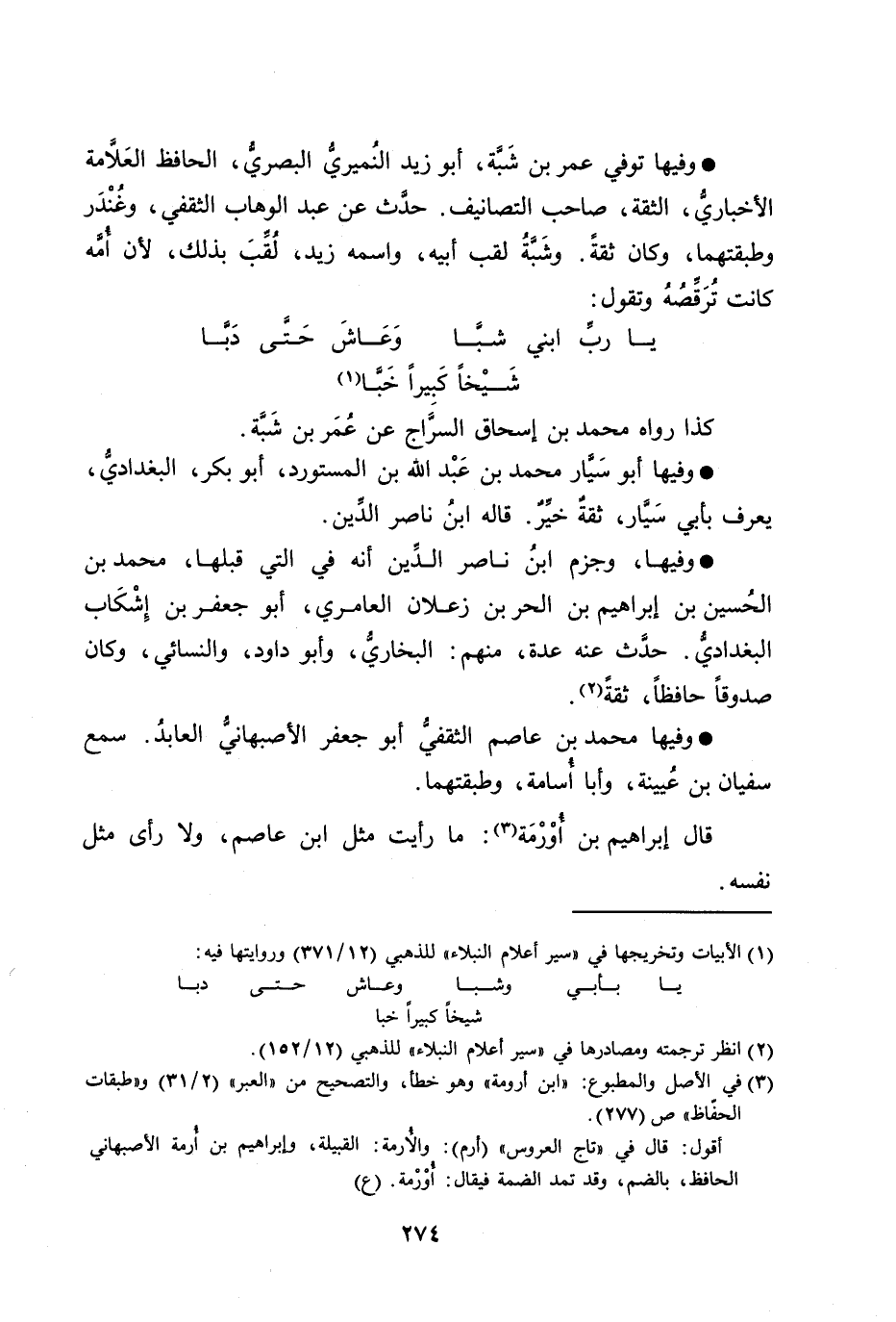 [3] في الأصل والمطبوع: «ابن أرومة» وهو خطأ، والتصحيح من «العبر» (2/ 31) و «طبقات الحفّاظ» ص (277) .