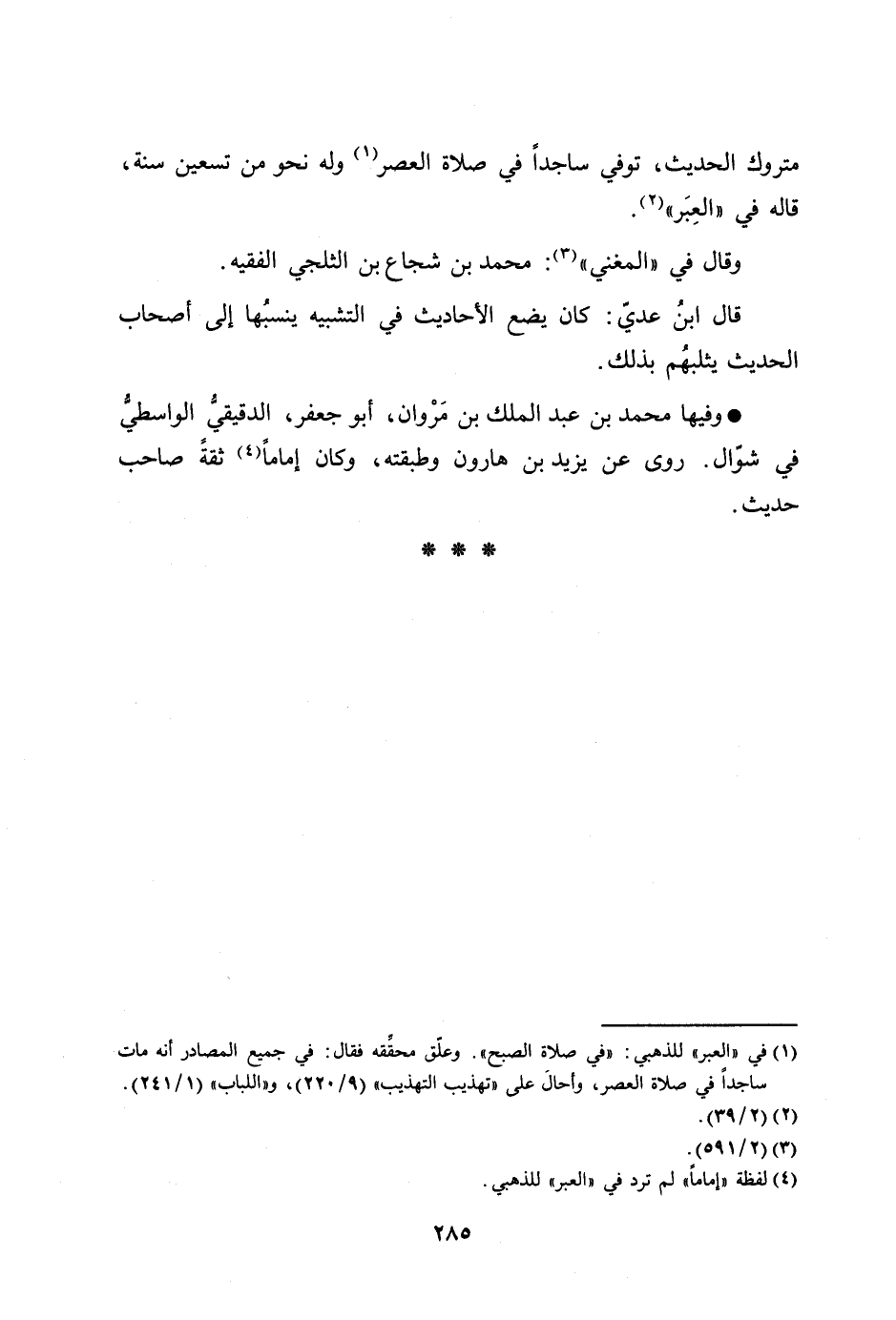 [1] في «العبر» للذهبي: «في صلاة الصبح» . وعلّق محقّقه فقال: في جميع المصادر أنه مات ساجدا في صلاة العصر، وأحال على «تهذيب التهذيب» (9/ 220) ، و «اللباب» (1/ 241) .