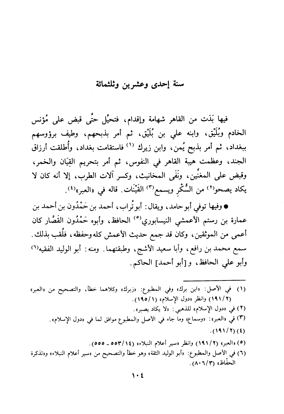 [5] «العبر» (2/ 191) وانظر «سير أعلام النبلاء» (14/ 553- 555) .