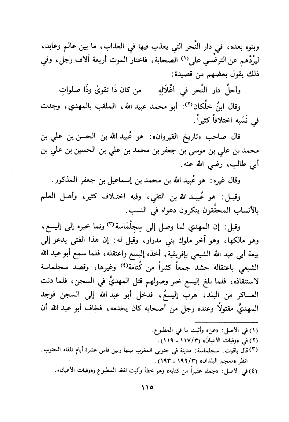 [3] قال ياقوت: سجلماسة: مدينة في جنوبي المغرب بينها وبين فاس عشرة أيام تلقاء الجنوب.
