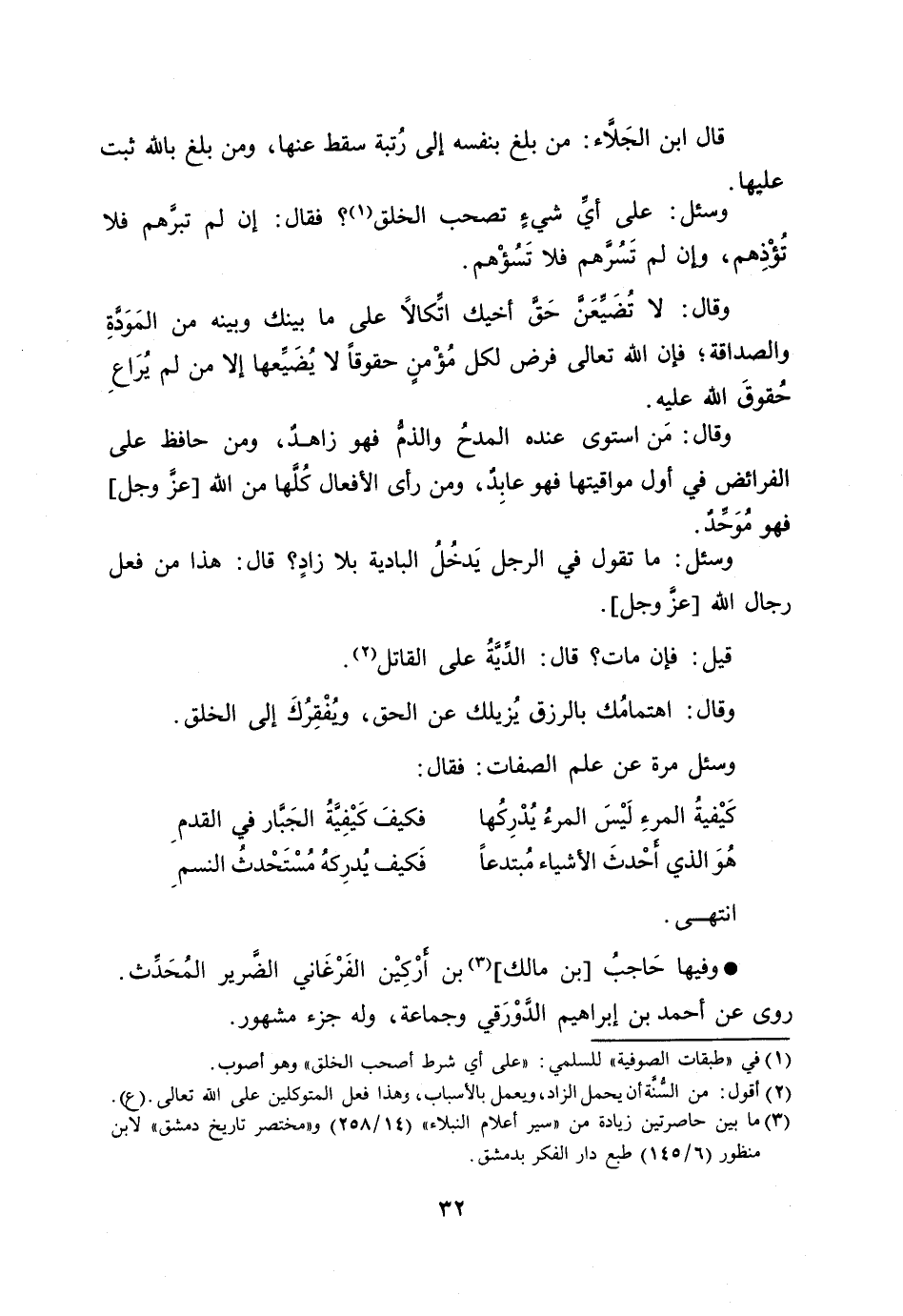 وسئل: على أيّ شيء تصحب الخلق [1] ؟ فقال: إن لم تبرّهم فلا تؤذهم، وإن لم تسرّهم فلا تسؤهم.
