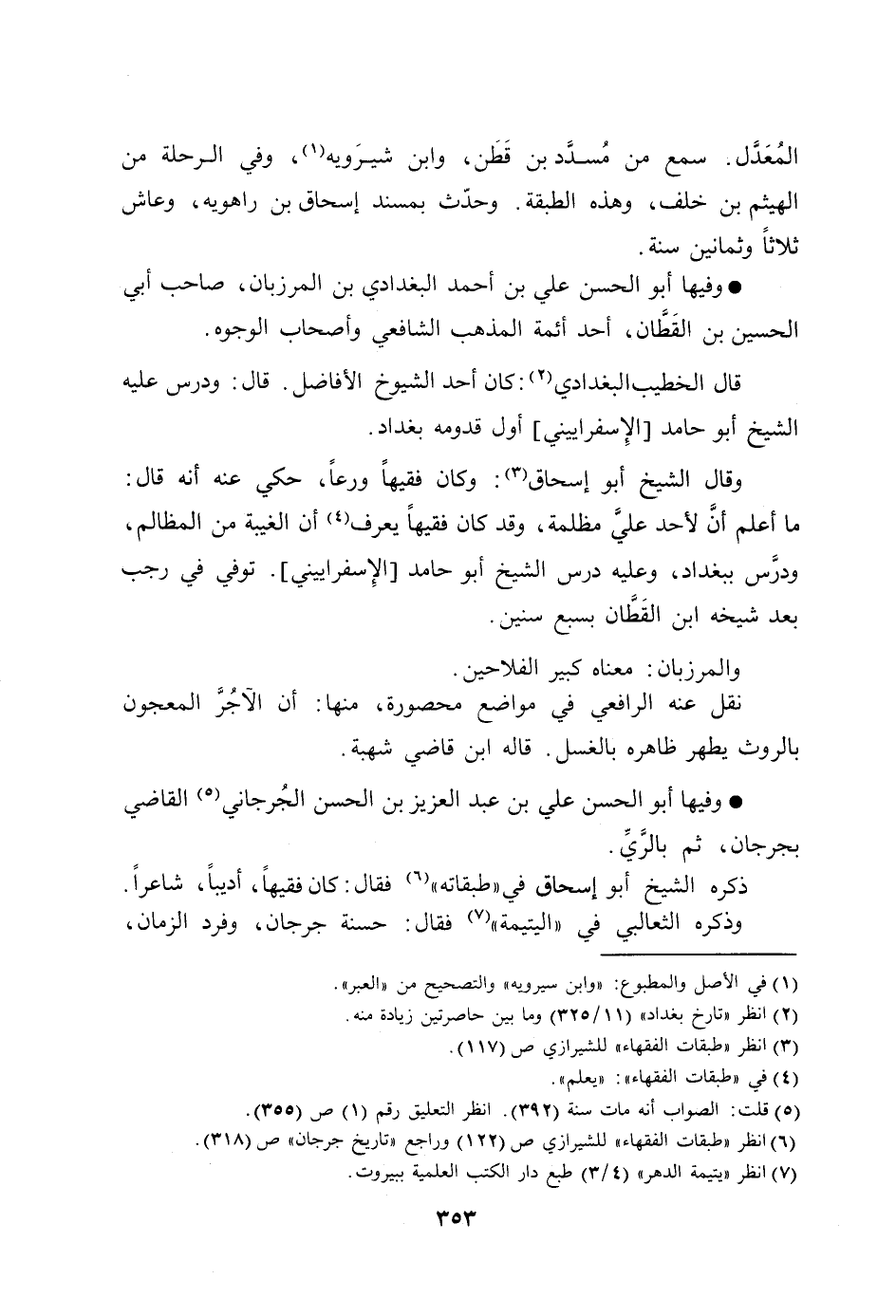 [6] انظر «طبقات الفقهاء» للشيرازي ص (122) وراجع «تاريخ جرجان» ص (318) .