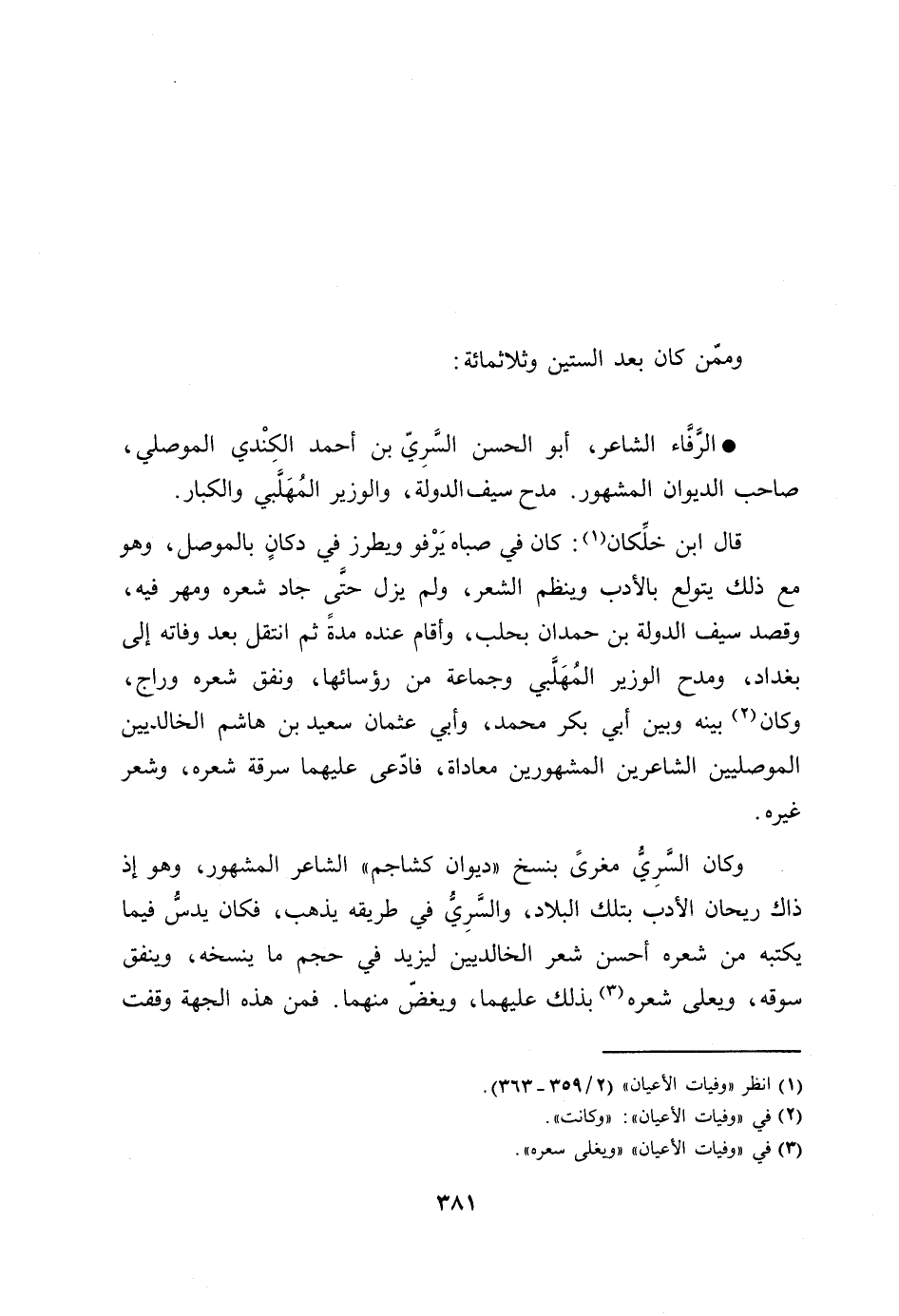 الرّفّاء الشاعر، أبو الحسن السّريّ بن أحمد الكندي الموصلي، صاحب الديوان المشهور. مدح سيف الدولة، والوزير المهلّبي والكبار.