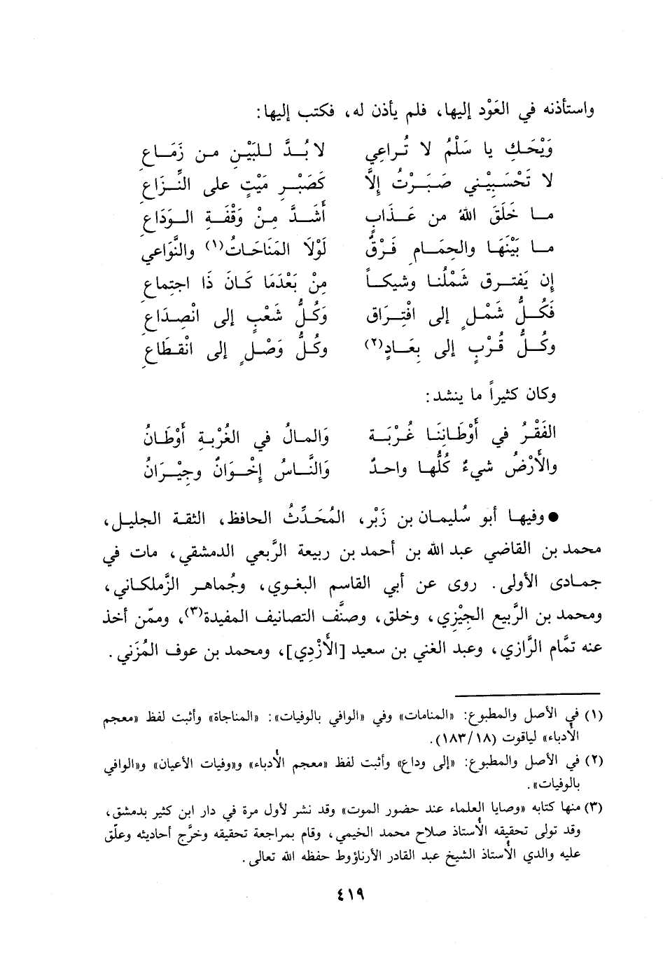 وكلّ قرب إلى بعاد [2] ... وكلّ وصل إلى انقطاع