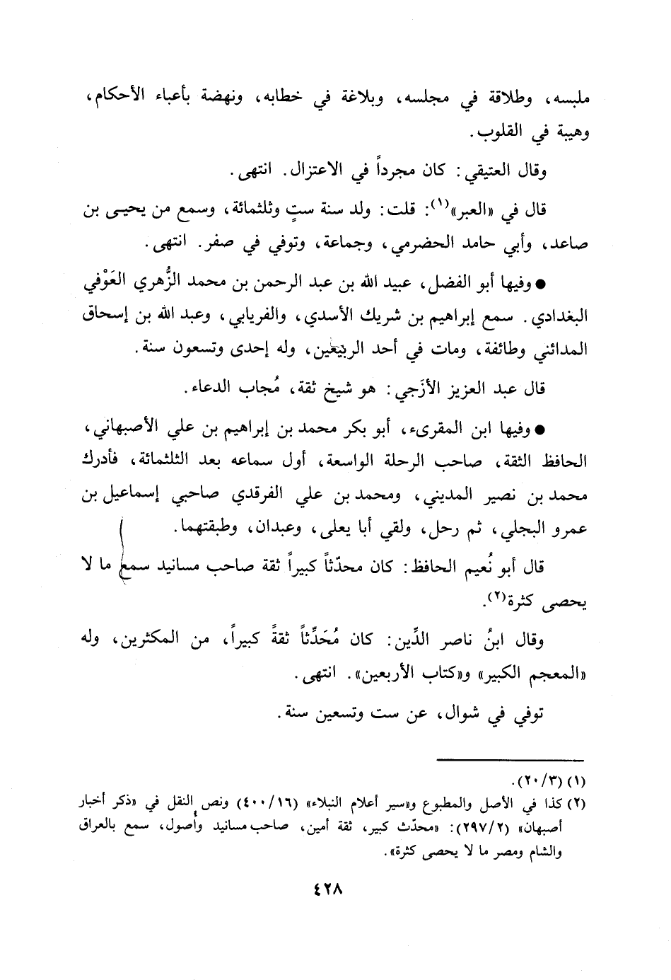 [2] كذا في الأصل والمطبوع و «سير أعلام النبلاء» (16/ 400) ونص النقل في «ذكر أخبار أصبهان» (2/ 297) : «محدّث كبير، ثقة أمين، صاحب مسانيد وأصول، سمع بالعراق والشام ومصر ما لا يحصى كثرة» .