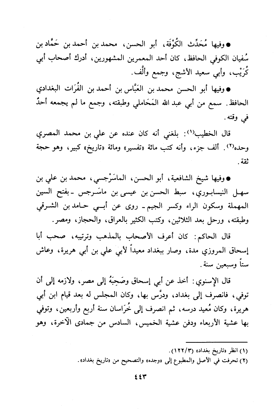 [2] تحرفت في الأصل والمطبوع إلى «وجده» والتصحيح من «تاريخ بغداد» .