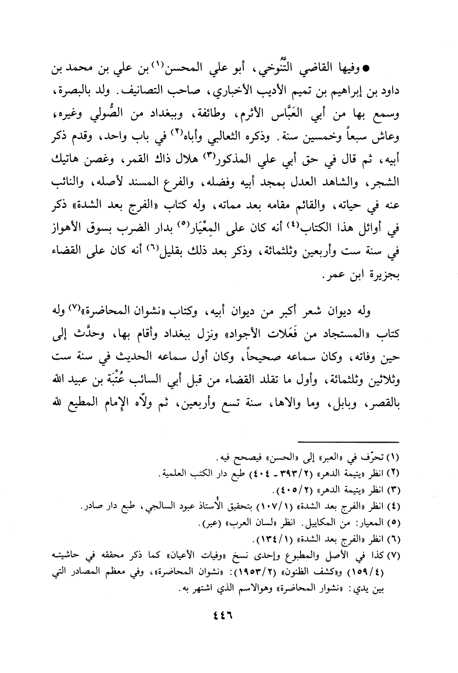 [4] انظر «الفرج بعد الشدة» (1/ 107) بتحقيق الأستاذ عبود السالجي، طبع دار صادر.