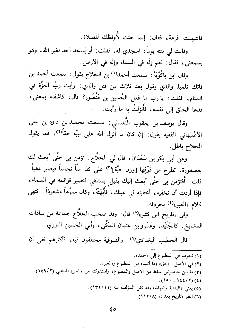 وقال يوسف بن يعقوب النّعماني: سمعت محمد بن داود بن علي الأصبهاني الفقيه يقول: إن كان ما أنزل الله على نبيّه حقا [2] ، فما يقول الحلاج باطل.