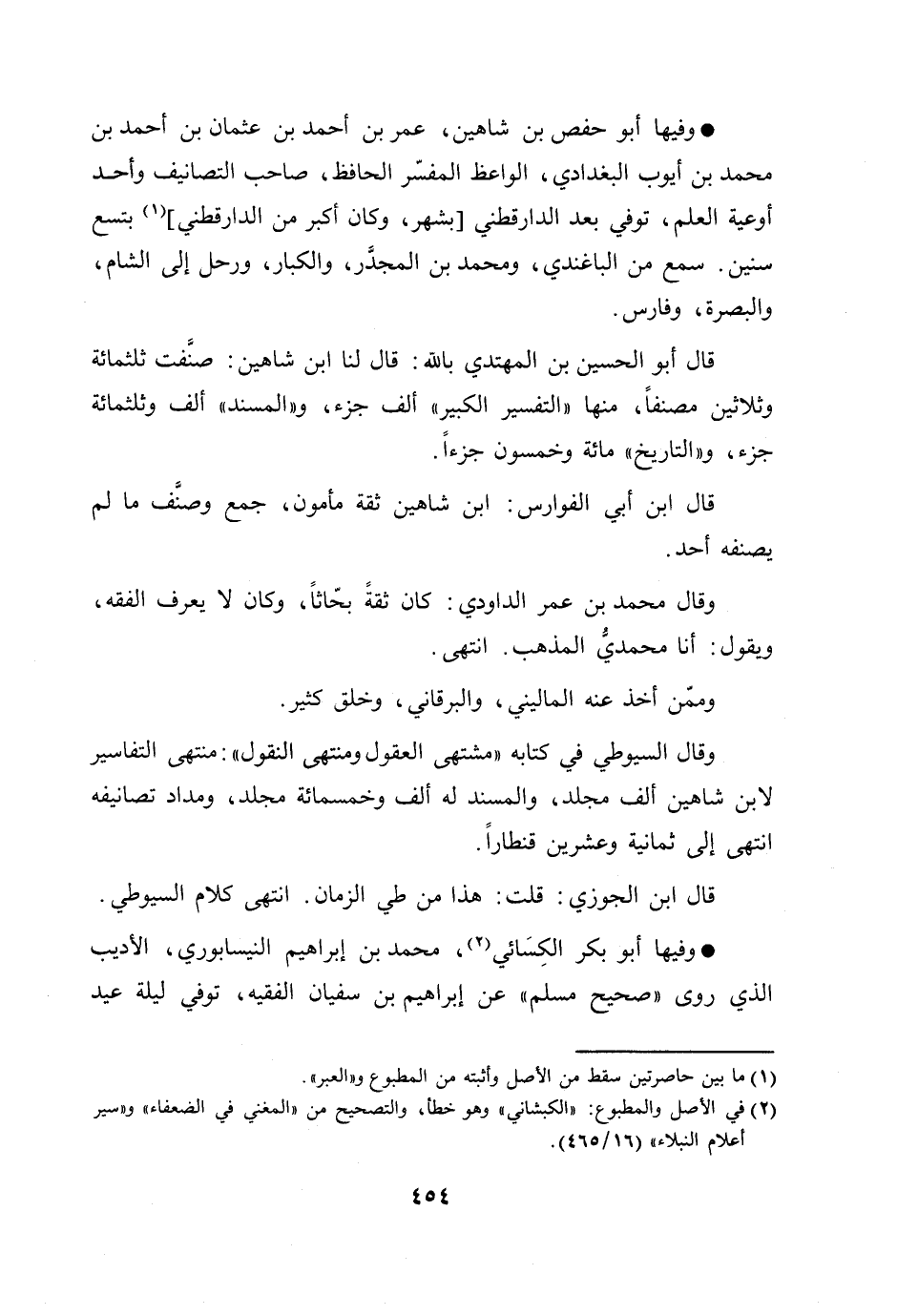 وفيها أبو حفص بن شاهين، عمر بن أحمد بن عثمان بن أحمد بن محمد بن أيوب البغدادي، الواعظ المفسّر الحافظ، صاحب التصانيف وأحد أوعية العلم، توفي بعد الدارقطني [بشهر، وكان أكبر من الدارقطني] [1] بتسع سنين. سمع من الباغندي، ومحمد بن المجدّر، والكبار، ورحل إلى الشام، والبصرة، وفارس.