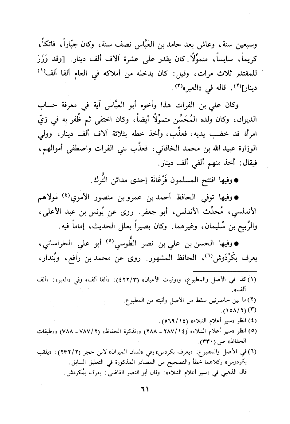[1] كذا في الأصل والمطبوع، و «وفيات الأعيان» (3/ 422) : «ألفا ألف» وفي «العبر» : «ألف ألف» .