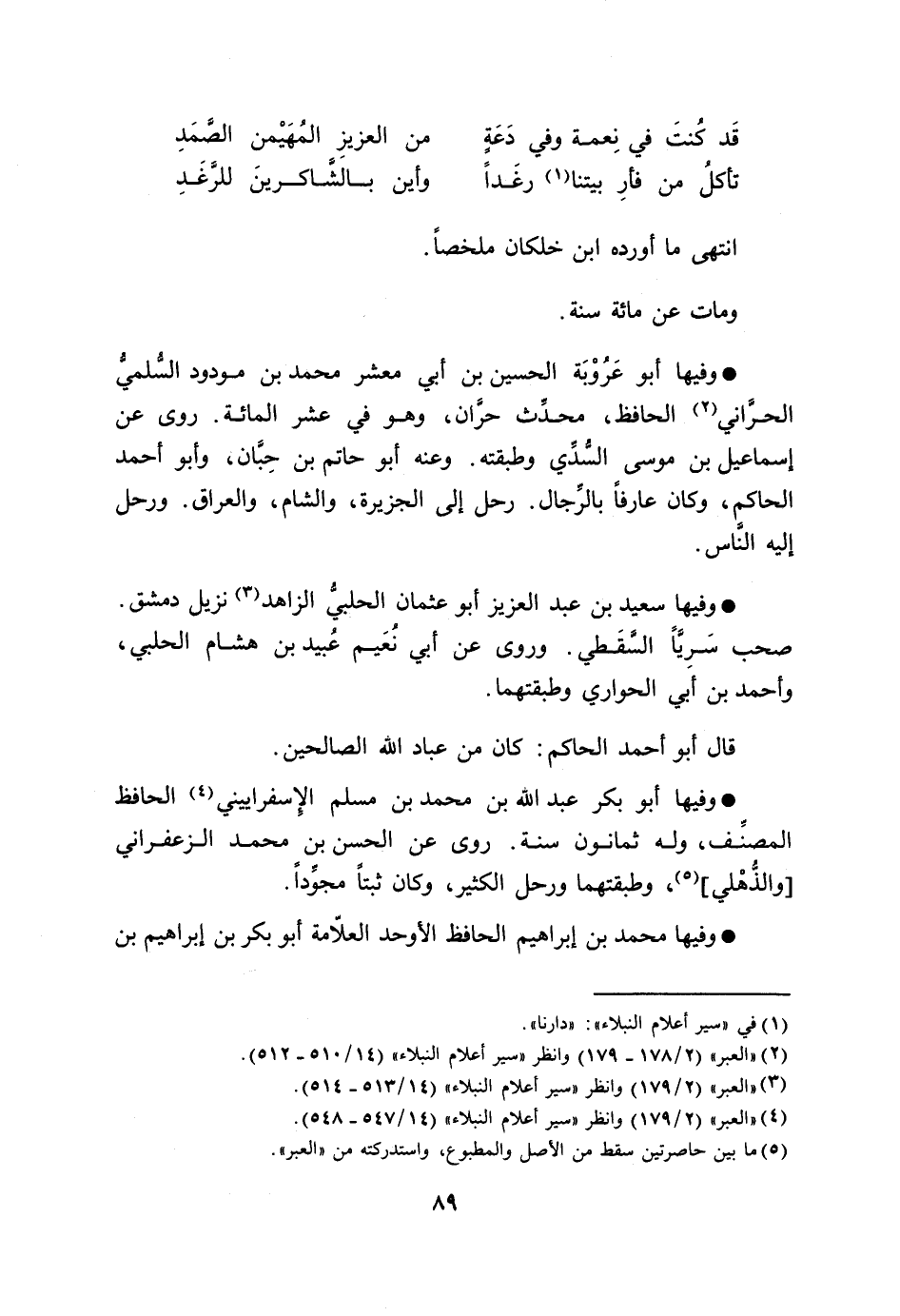 [3] «العبر» (2/ 179) وانظر «سير أعلام النبلاء» (14/ 513- 514) .