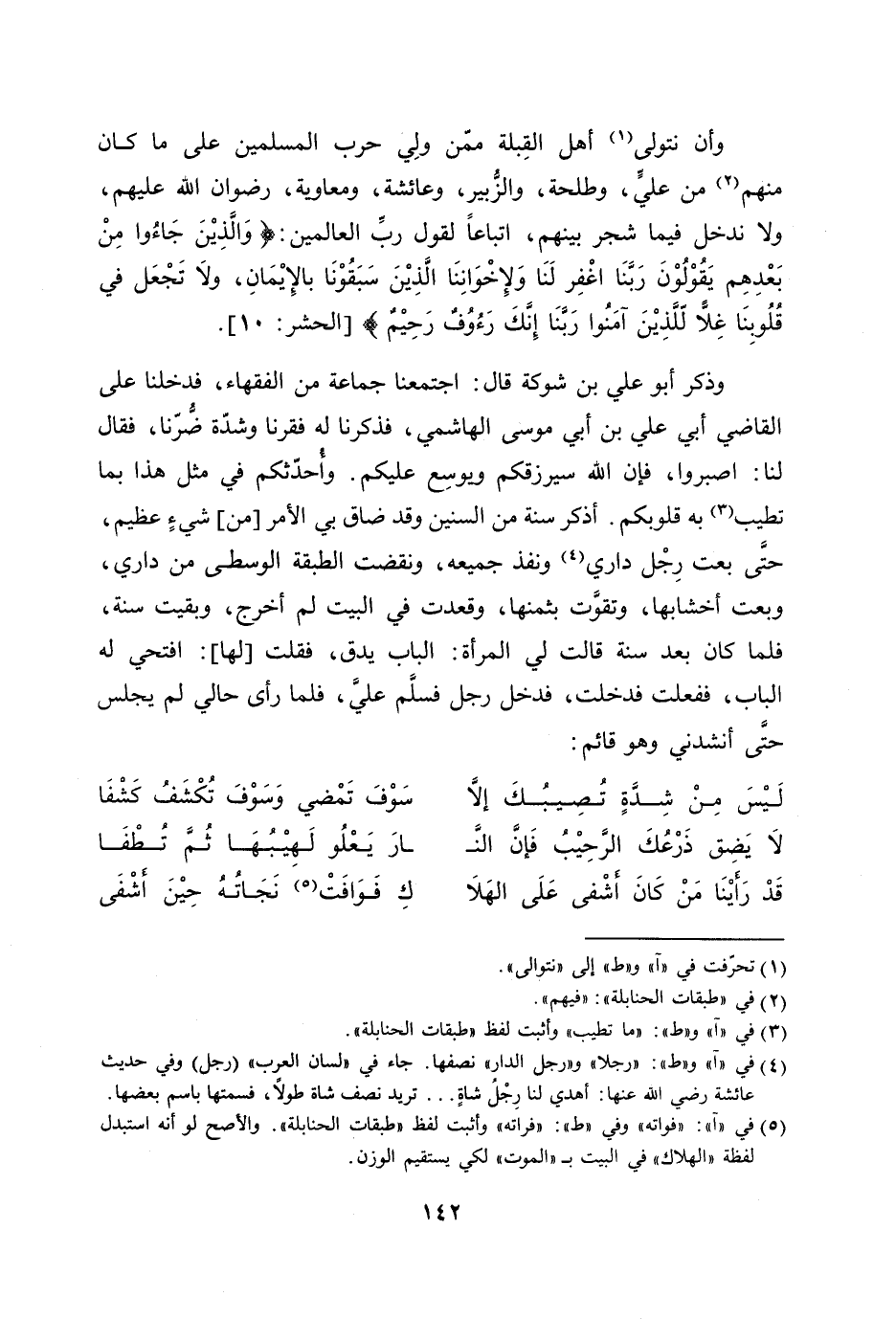 [5] في «آ» : «فواته» وفي «ط» : «فراته» وأثبت لفظ «طبقات الحنابلة» . والأصح لو أنه استبدل لفظة «الهلاك» في البيت ب- «الموت» لكي يستقيم الوزن.