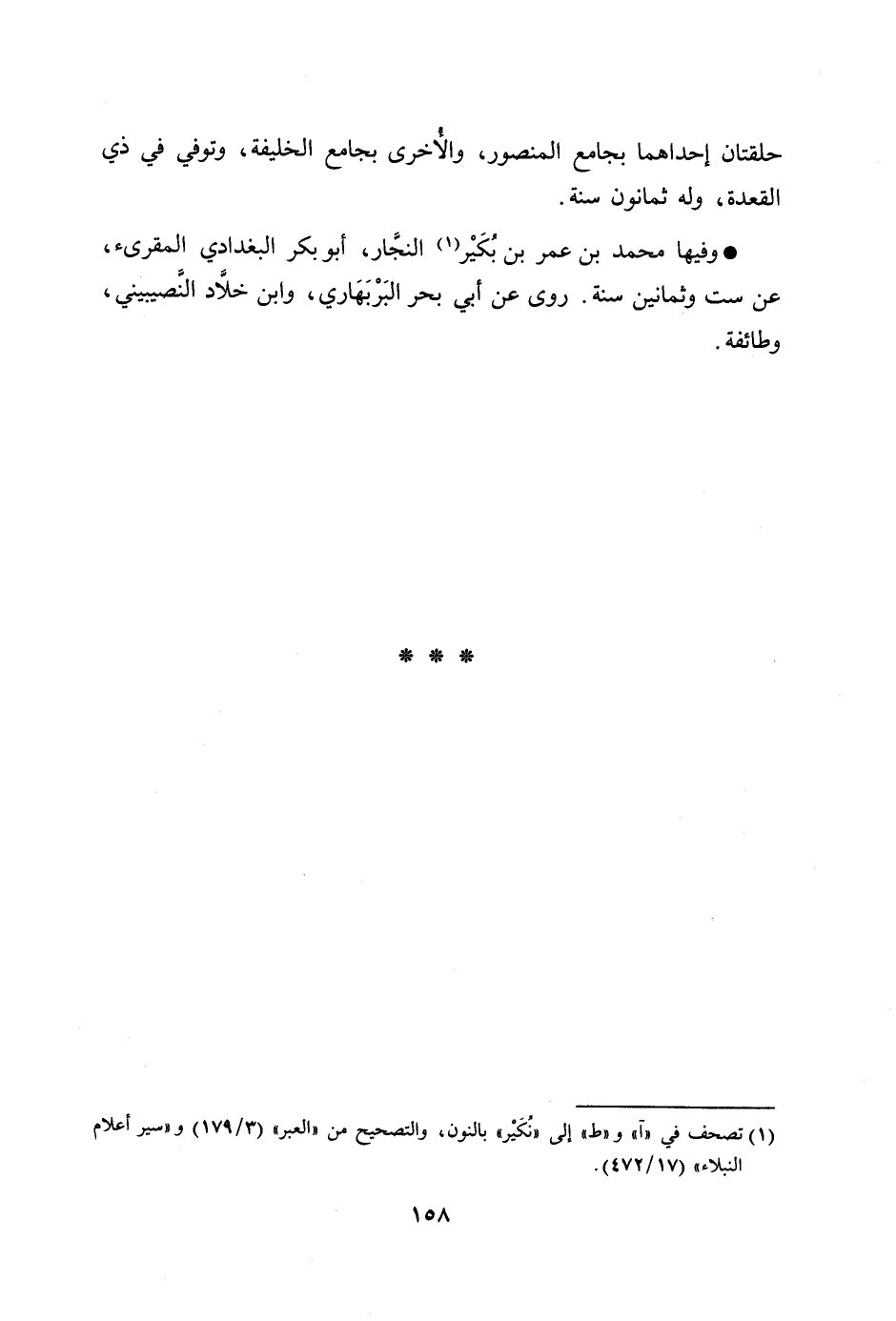 [1] تصحف في «آ» و «ط» إلى «نكير» بالنون، والتصحيح من «العبر» (3/ 179) و «سير أعلام النبلاء» (17/ 472) .