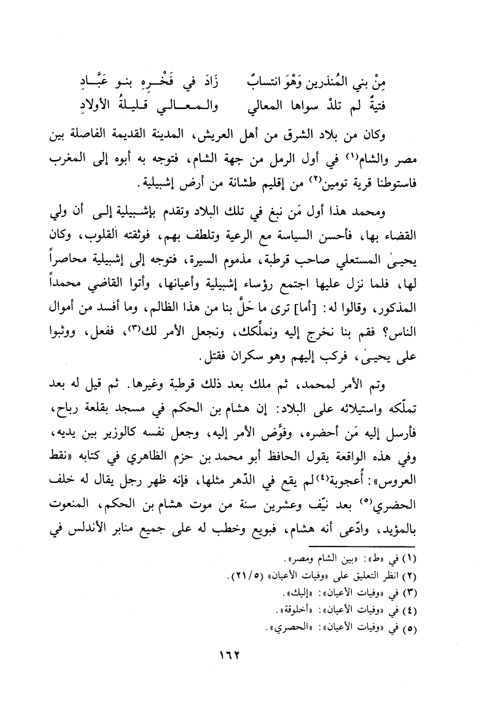 وتم الأمر لمحمد، ثم ملك بعد ذلك قرطبة وغيرها. ثم قيل له بعد تملّكه واستيلائه على البلاد: إن هشام بن الحكم في مسجد بقلعة رباح، فأرسل إليه من أحضره، وفوّض الأمر إليه، وجعل لنفسه كالوزير بين يديه، وفي هذه الواقعة يقول الحافظ أبو محمد بن حزم الظاهري في كتابه «نقط العروس» : أعجوبة [4] لم يقع في الدّهر مثلها، فإنه ظهر رجل يقال له خلف الحضري [5] بعد نيّف وعشرين سنة من موت هشام بن الحكم، المنعوت بالمؤيد، وادّعى أنه هشام، فبويع وخطب له على جميع منابر الأندلس في