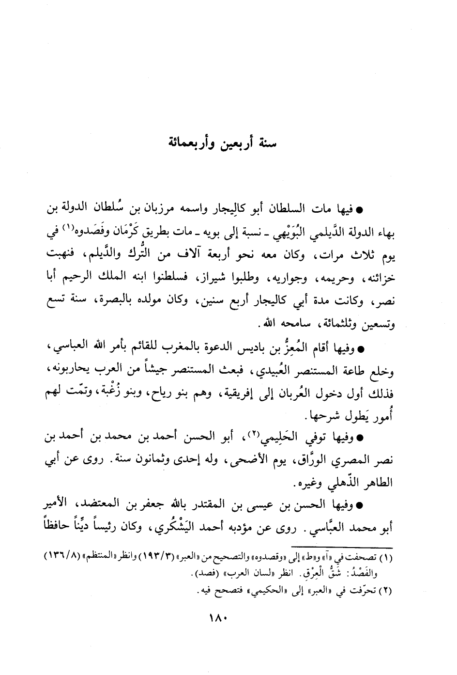 [1] تصحفت في «آ» و «ط» إلى «وقصدوه» والتصحيح من «العبر» (3/ 193) وانظر «المنتظم» (8/ 136) والفصد: شقّ العرق. انظر «لسان العرب» (فصد) .