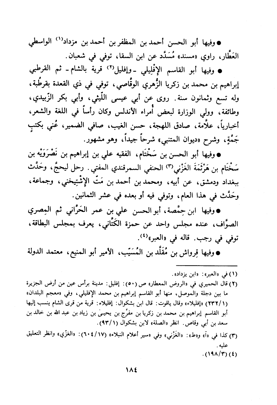وفيها أبو القاسم الإفليلي- وإفليل [2] قرية بالشام- ثم القرطبي إبراهيم بن محمد بن زكريا الزّهري الوقّاصي، توفي في ذي القعدة بقرطبة، وله تسع وثمانون سنة. روى عن أبي عيسى اللّيثي، وأبي بكر الزّبيدي، وطائفة، وولي الوزارة لبعض أمراء الأندلس وكان رأسا في اللغة والشعر، أخباريا، علّامة، صادق اللهجة، حسن الغيب، صافي الضمير، عني بكتب جمّة، وشرح «ديوان المتنبي» شرحا جيدا، وهو مشهور.