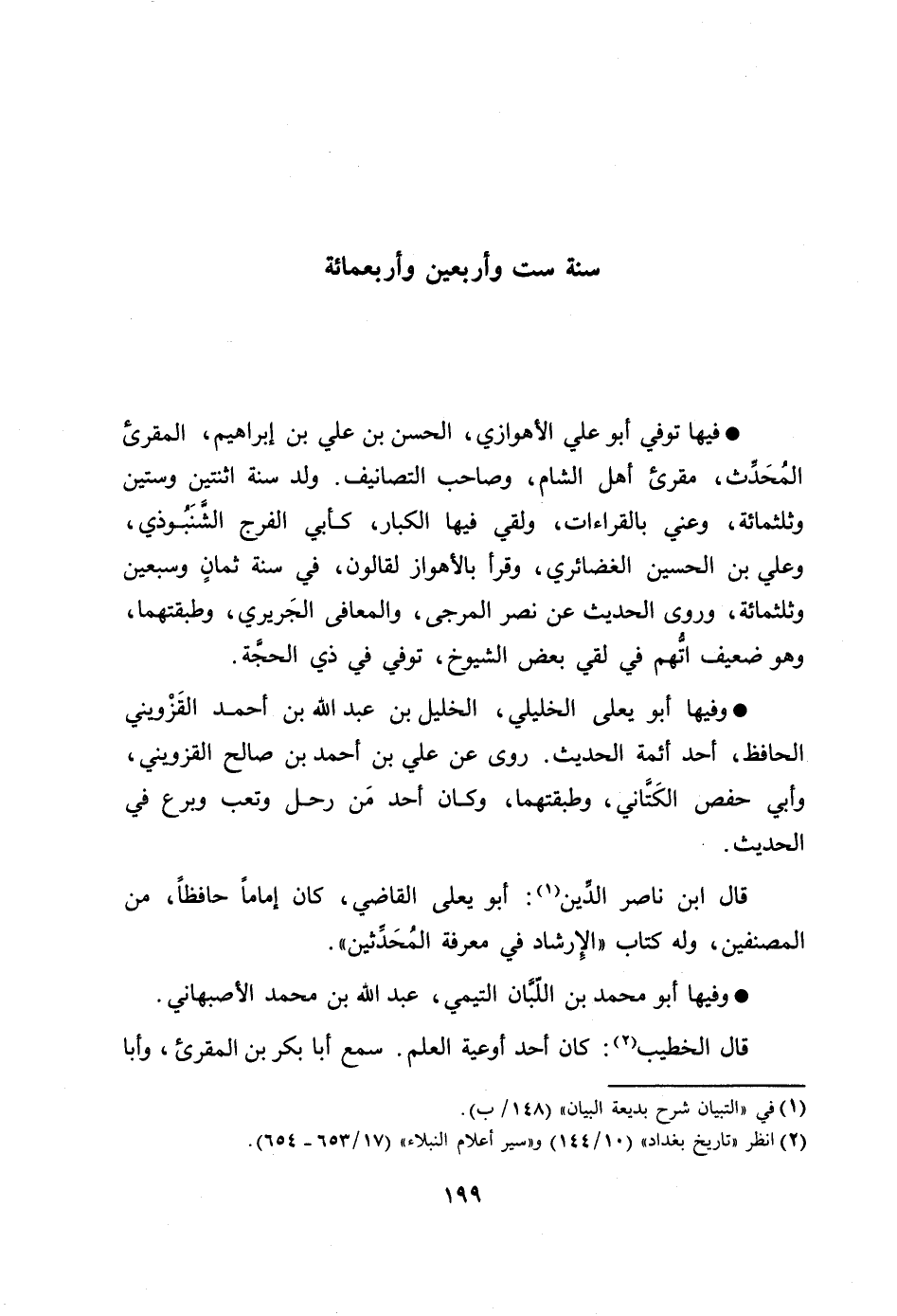 قال ابن ناصر الدّين [1] : أبو يعلى القاضي، كان إماما حافظا، من المصنفين، وله كتاب «الإرشاد في معرفة المحدّثين» .